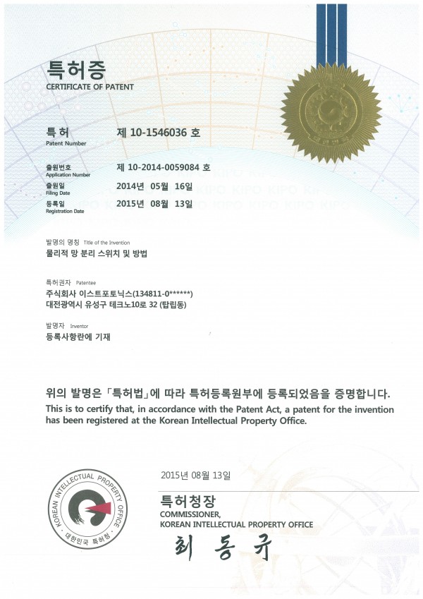 특허 제 10-1546036호 페이지 정보 작성자 최고관리자 작성일23-06-22 13:14 조회1,806회 댓글0건 본문 물리적 망 분리 스위치 및 방법 댓글목록 이전글특허 제 10-1552682호 23.06.22 다음글특허 제 10-1546035호 23.06.22 목록