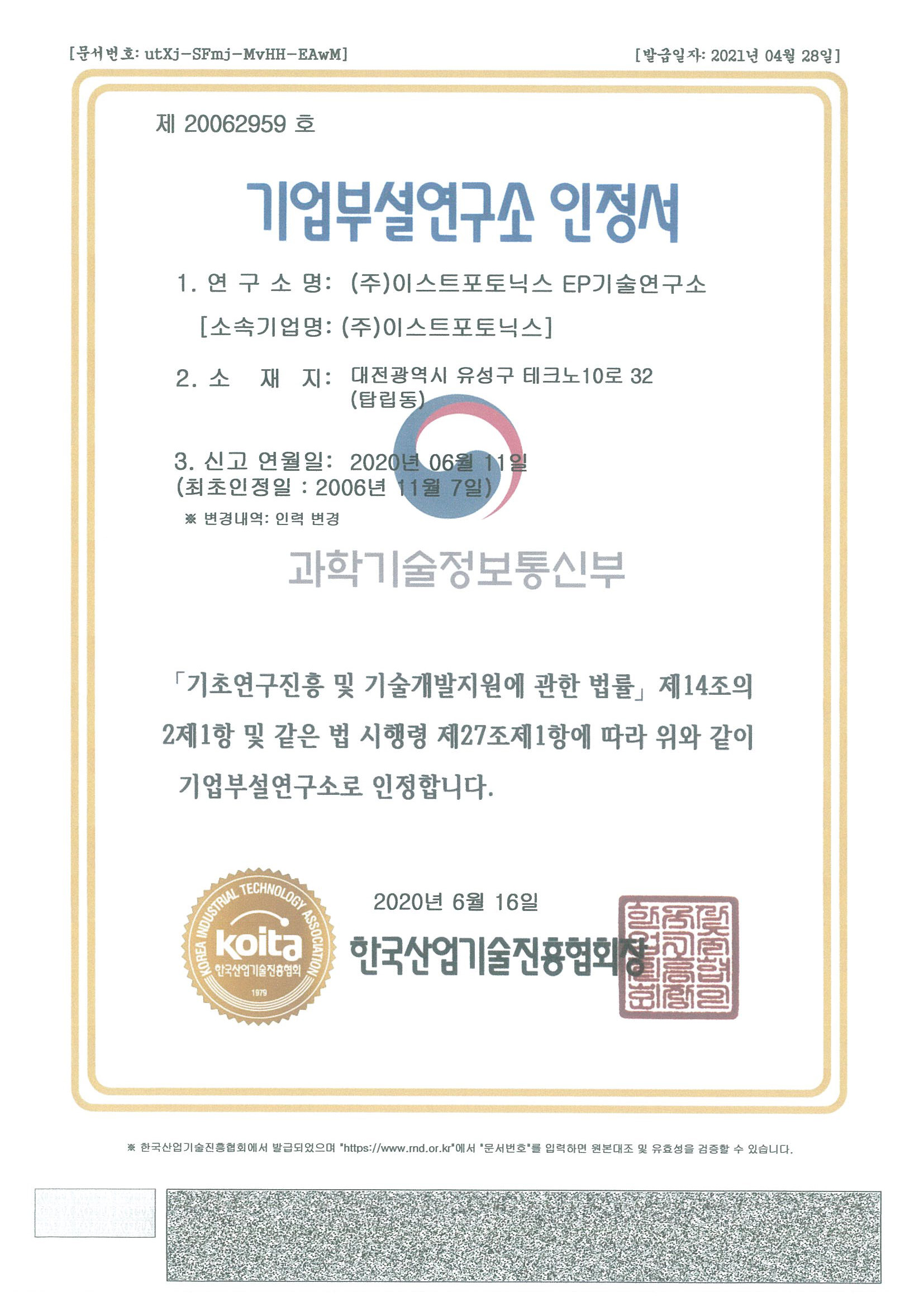Copyright ⓒ East Photonics Corporation All Rights Reserved.