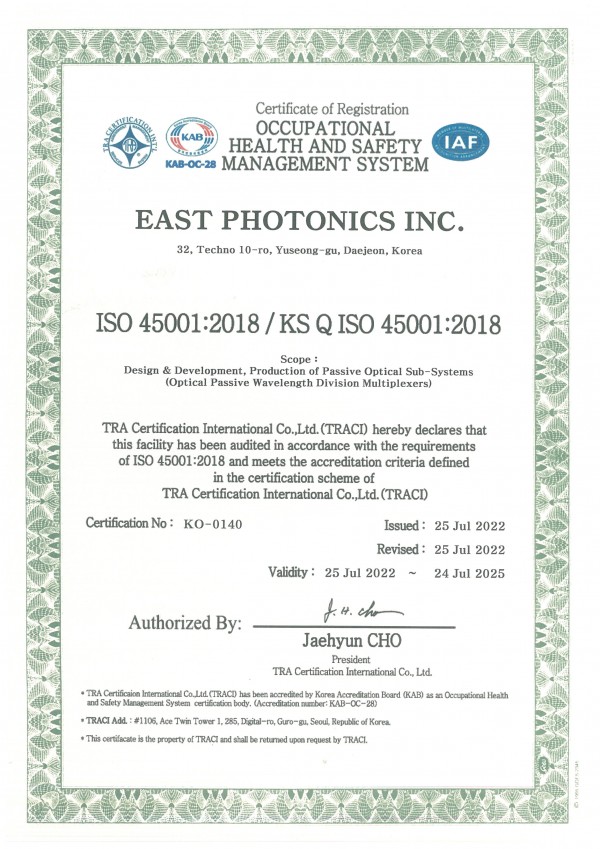 Certificate of Safe and Healthy Management System (English)