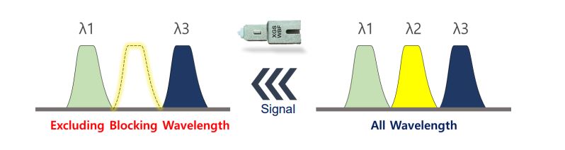| Blocking Wavelength Selection | - Provides interference free for existing G-PON 'ONU' by completely blocking XGS-PON wavelength inflow. - It blocks light wavelengths that interfere with the OTDR. |